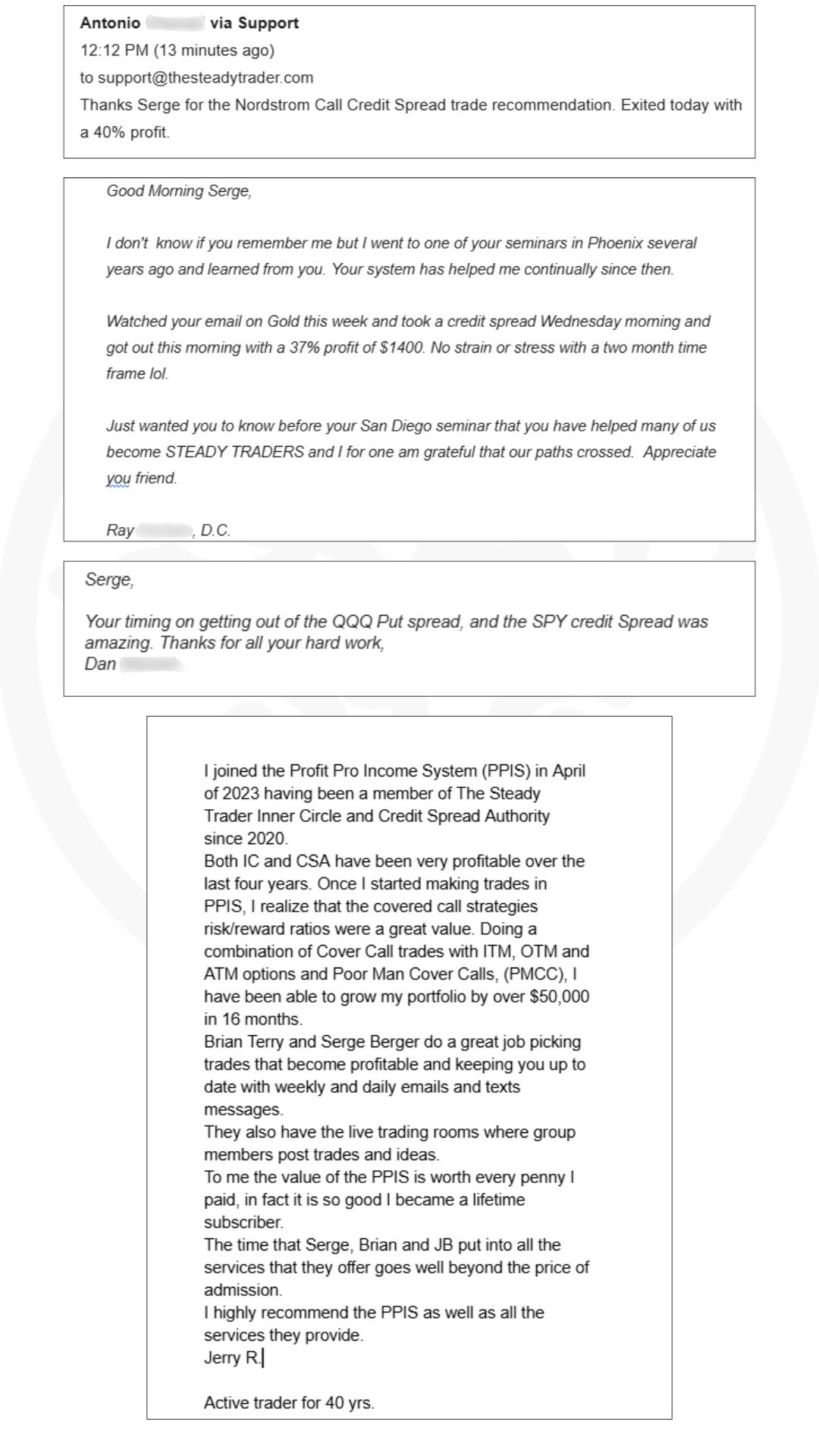 I have read and agree to the terms of this service and Privacy Policy. I agree to pay $797 for Profit Pro Income System and understand that it does NOT automatically renew. If you have any questions please contact support@thesteadytrader.com or 401-203-7389